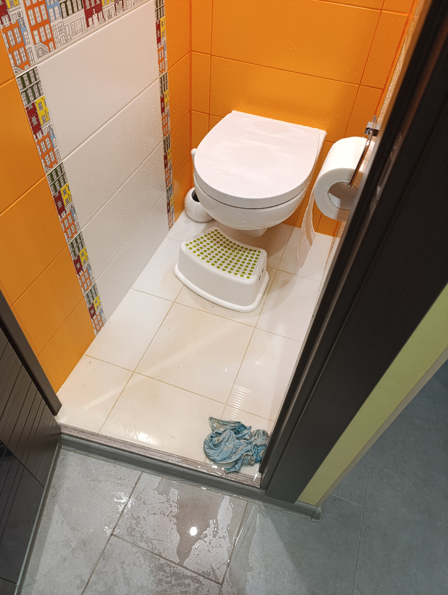 На днях случилось у нас ЧП. Работала я дома, время 17.00 думаю, пойду чай себе налью. Кухня у меня граничит с санузлом. Ещё соседи за стенкой делают ремонт, шум почти постоянно и ребенок телевизор смотрит с мультиками своими. Стою я значит, жду пока чайник вскипит. И тут хлопок и звук льющейся воды. Первые секунды я думала, что это что-то у соседей, потом понимаю, что у меня. Захожу в туалет, а у меня там коммуникации закрыты такими металлическими жалюзями, оттуда хлещет кипяток фонтаном😱. Пока я сообразила где воду перекрыть, корзиночка в шоке рядом бегает, кипяток прям в лицо. Кое как воду перекрыла. За эти 3-4 минуты пока я соображала залило туалет, коридор и половину кухни. Я давай все убирать быстрее. Воду эту вытирать. Счастье, что мы на 1 этаже и заливать нам некого. Счастье, что это случилось именно в 17.00, так как позже мы уходим на тренировку с ребенком. Счастье, что я пошла налить чай, так как работаю я в спальне, это дальняя комната, и я просто не услышала бы. Затопить на