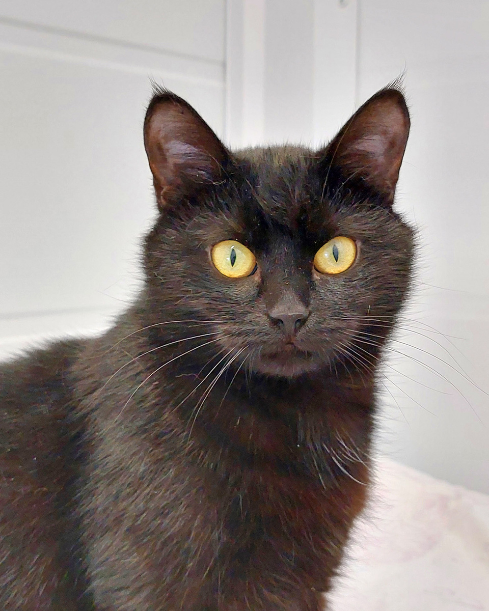 Чемпионка всех спортивных кошачьих достижений приехала к нам в приют организовывать соревнования. Эту спортсменку зовут Лора, она гибка и сильна, женственна и изящна. Лора следит за модой, несмотря, на то, что спорт превыше всего. Кошка стильная, ухоженная. Предпочитая черный цвет, Лора абсолютно права. Сколько красавиц подтвердили этот цвет. Он держит форму и марку, стилен и прекрасен. Сколько может быть оттенков у черного?) бесконечное количество. Лора знает все об этом. Стараясь поймать лучики солнца, Лора становится шоколадной, в тени, кошка черная, как смоль сверкает желтыми глазами. Только усы Лора покрасила в белый, как будто выпила миску молока. Грациозная и стройная ходит Лора по залу, показывая разные акробатические этюды. Выгнет спинку, встанет на задние лапки. Ну чисто чемпионка и медалистка. С людьми Лора понимающая и ласковая. Зная, что часто люди грустят, Лора поправляет их настроение песенкой или игрой. Приходите знакомиться с нашей медалисткой Лорой. Спорт спортом, а з