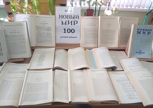 Голубая обложка журнала «Новый мир» знакома без преувеличения каждому советскому и российскому читателю. Днем рождения "Нового мира", открывшего советским читателям не один десяток талантливых литераторов, считается 18 января 1925 года. В читальном зале научной библиотеки в Антоново открыта обширная выставка «Новый мир» - 100 летний юбилей». Здесь представлены отдельные номера журналов, начиная с 1950-х годов, книги с теми произведениями, которые впервые пришли к читателям со страниц журнала. Экспозиция позволяет проследить столетнюю историю «Нового мира», через знакомства с самыми знаковыми публикациями и эпохами знаменитых редакторов, фигуры которых неотъемлемы от переломных моментов истории СССР и Российской федерации. Ю. Стеклов и А. Луначарский – отцы основатели журнала и участники созидания первого десятилетия Советской власти. К. Симонов, ставший в 31 год первым послевоенным редактором журнала. А. Твардовский, при котором журнала стал изданием, поддерживающим идеологические ос