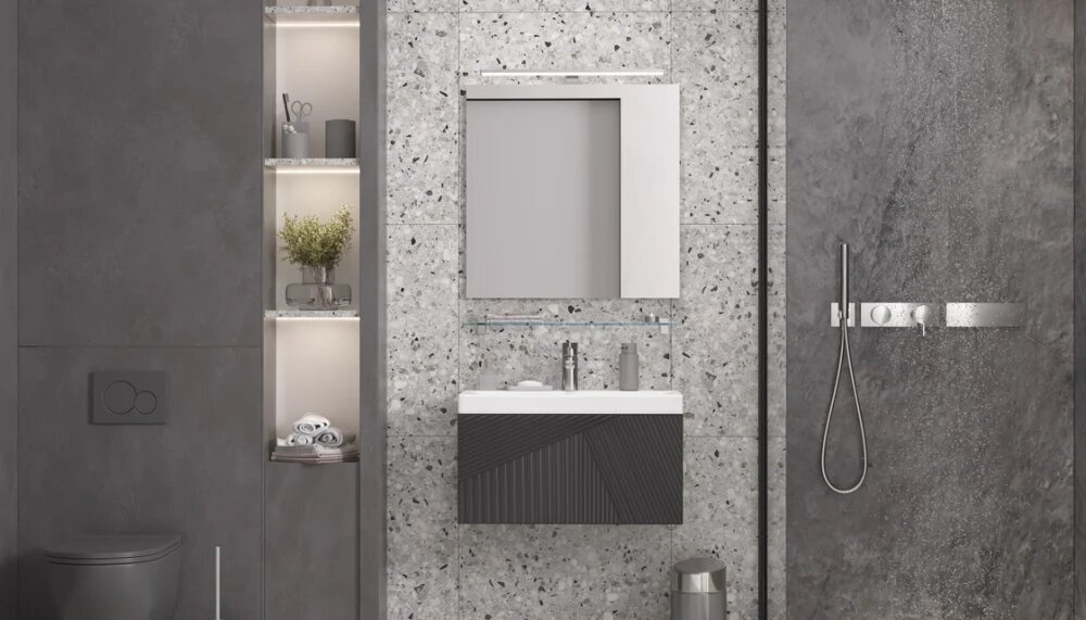 Ванная комната у многих ассоциируется больше с женской, чем с мужской энергией. Ведь это царство баночек, тюбиков и пушистых полотенец. А существуют ли по-настоящему брутальные интерьеры? Звучит как миф. Считается, что для мужчин ванная — это зона, которую посещают, чтобы бросить грязную одежду в стиральную машину, побриться и просто принять душ. Это все стереотипы. Поговорим о ванной, которая излучает уверенность и мужественность, не забывая при этом о комфорте. Итак, 6 лучших идей для ванной с мужским характером. Тумба подвесная Edge Много лишних деталей — это совсем не про мужской интерьер. Простые формы и практичные материалы — лучший вариант для ванной с брутальным уклоном. Даже декор в таком интерьере не акцентный, а больше дополняющий. Сочетание натуральных фактур дерева, камня, стекла, металла создают эффект просторности и лаконичного стиля. Интересные фактуры и четкая геометрия также являются неотъемлемой частью ванной в мужском стиле. Это может быть использовано как в отделке