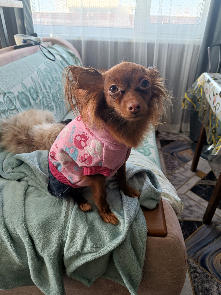 Погода выдалась теплая, но ветреная. Шашлык - не вариант. А у меня есть тандыр - подарок детей на один из дней рождения. Для двоих заводить канитель не резонно, а вот для визита гостей - самое то. Пока я готовила угощения на праздничный стол, наш папа решил принарядить хвостатых деток. И началась забава. Первая попалась Молли. Впрочем, нашей девочке наряжаться не привыкать. Молли довольно спокойно весь вечер была при параде, развлекая гостей. Потом папа добрался до Буси. В одежде наша Серость ходила "заниженная", вызывая смех. Где-то видео успела снять. Попробую не забыть выложить. На нашего Беляшика найти одежку оказалось непросто. Ну не оставлять же её без наряда? Своей невозмутимостью Люся просто покоряет. Такая вся из себя красивая. На шумок показался Гаврюша. И ему папа нашел одежку. Маловата кольчужка, но поскольку уж все при параде, не оставлять же мальчишку без модного прикида. В очередной раз папа удивился: "Как я не разглядел, что Гаврюша косоглазый? Точно бы не стал брать