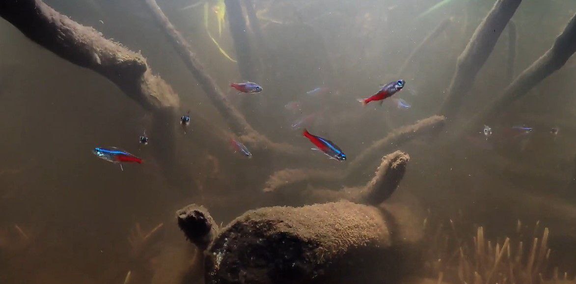 Неон (Paracheirodon innesi) — одна из самых популярных аквариумных рыбок, известная своей яркой окраской и миролюбивым характером. Эти маленькие, но эффектные рыбки станут украшением любого аквариума, создавая атмосферу тропического подводного мира. Неоны имеют небольшие размеры (до 4 см) и отличаются яркой, контрастной окраской. Вдоль их тела проходит сине-голубая полоса, которая светится, как неоновая лампа, а нижняя часть тела окрашена в ярко-красный цвет. Аквариум: Объём от 30 литров для стайки из 6–10 особей. Вода: Температура — 22–26 °C, pH — 5.5–7.0, жёсткость — 5–12 dGH. Освещение: Умеренное, с затенёнными участками. Растения и декор: Густая растительность и укрытия создают комфортную среду для неонов. Неоны всеядны. Их рацион может включать: Сухие корма (хлопья, гранулы). Живые или замороженные корма (дафния, артемия, мотыль). Неоны хорошо уживаются с другими мелкими и мирными рыбками, такими как гуппи, тетры и данио. Избегайте соседства с крупными или агрессивными видами. Раз