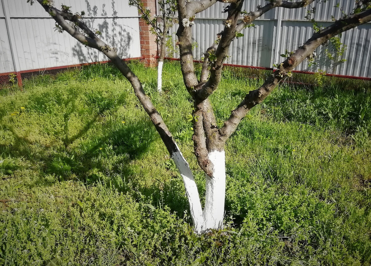 Рассмотрим использование садовой побелки для защиты деревьев весной.