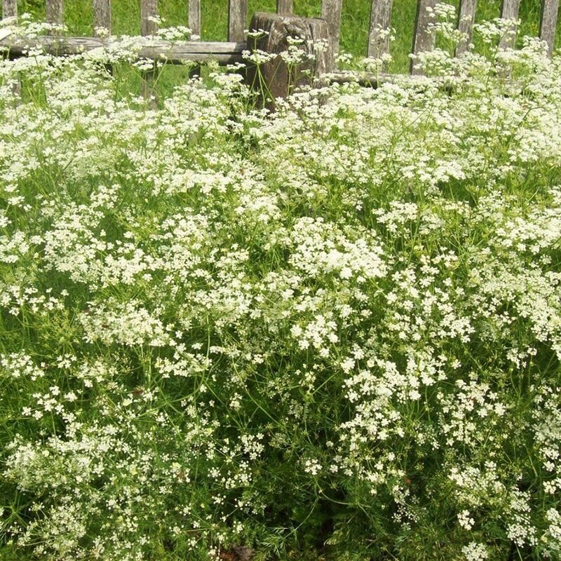 Описание: однолетнее травянистое растение из семейства зонтичных высотой 30-50 см. Стебель прямой округлый, сверху ветвистый. Листья нижние цельные, надрезанно-зубчатые или лопастные, средние длинно-черешковые, тройчатые, с клиновидными, часто двухлопастными боковыми сегментами и трехлопастным конечным сегментом; верхние листья сидячие и рассечены на узкие доли. Цветки мелкие, белые, собраны в сложные зонтики. Плод— двухсемянка яйцевидной формы. Цветет в июне-июле, плоды созревают в августе. Хороший медонос. Запах характерный, вкус сладковато-пряный.