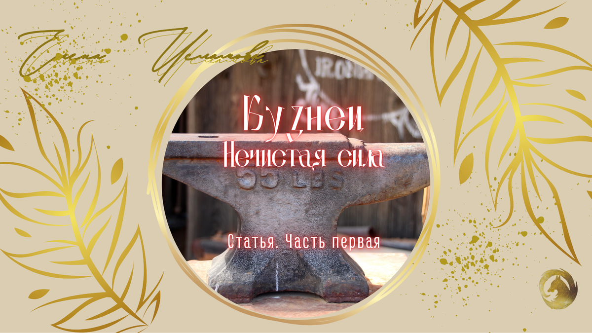 «У меня отец кузнец был, только начал работать в кузнице. Топор ковали, а никак не получалось. Тут-то и услышал голоса, дескать, один одного и спрашивает: «Ковали?» — «Ковали». — «А в песок совали?» — «Совали». Вышел — никого нет. А кто подсказывал, не знаю. И дошло до него, что надо в песок совать! Вот работаешь, и предъявлением каким-то явится. А выйдешь — никого и нету». (АМАЭ, д.1416, л.32. Ярославская обл., Пошехонский р-н, 1984 г. Ж 1907 г.р.)