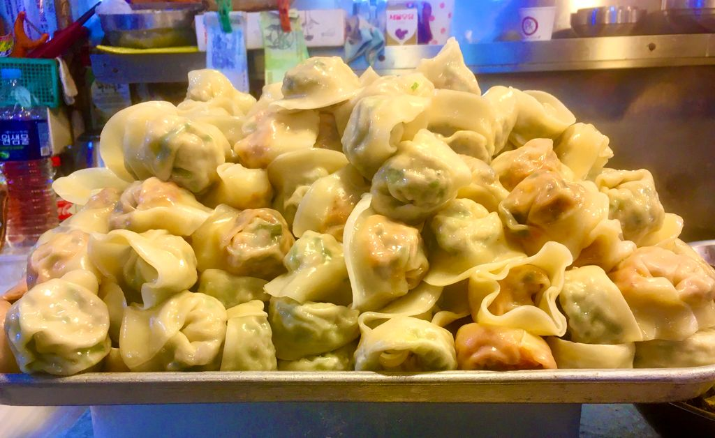 Погуляв по рынку Чунбу, мы изрядно проголодались, да и немного замёрзли - как-никак, а декабрь и в Сеуле зима, поэтому решили немного перекусить. Благо в Корее с этим проблем нет. Особенно на рынке. Не успели подумать о еде, как ноги нас сами вывели на food court рынка, а глаза и нос - к прилавку с корейскими пельменями - манду (만두). Ну, разве может немного озябший и изрядно проголодавшийся путешественник спокойно пройти мимо горы ароматных да с пылу с жару манду, приправленных всевозможными корейскими специями и приправами, и моря разнообразных закусок - панчанов (반찬) к ним? Корейские бабушки, которые есть на любом корейском рынке, как всегда радушно нас встретили и очень вкусно накормили... А знание языка сделало нашу трапезу ещё вкуснее - ведь любой хозяйке приятно, когда к ней обращаются на её языке, когда хвалят её работу, да ещё и добавки просят... Будете в Корее, обязательно попробуйте отведайте разнообразные блюда национальной корейской кухни - не пожалеете.