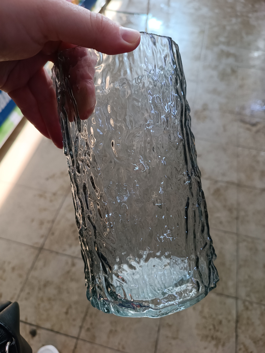 Приветствую! Я быстренько сверстаю этот обзор из Фикса и публикую, чтоб еще один обзор успеть снять. из другого магазина. А завтра - ждите Чижик... а ФИКС ПРАЙС сегодня тоже достаточно новинок выставил. Начну с вазочек. Стеклянные, из неровностей. не знаю, как их назвать. Но очень понравились. Всего их три цвета. Первый - сровато-голубоватый. Второй - просто прозрачный бес цвета и третий - розовый! Просто прелесть! Стенки довольно толстые, вазочка тяжеловатая. Описание с этикетки: и ценник: Горшочки последнее время редко возят. Особенно редко привозят необычные и красивые. Я даже удивляюсь. В прежние годы горшочков было много, разных форм красивых, а сейчас скудненько. Но сегодня появились эти, обтекаемой формы, похожие на шар. Вид сбоку: Стенки тоже толстые, по тяжести - не легкие, думаю, что керамика. Дырочка на дне есть. А вот поддона нет... Очень это огорчает. Если и привозят горшки, то обязательно без поддона... Объем на этикетке: В этом магазине было только два цвета, их и