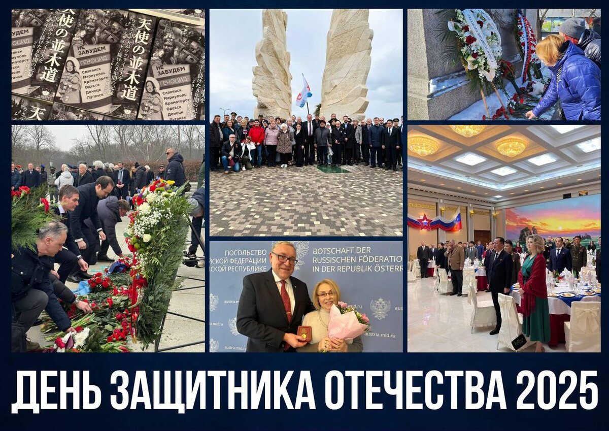 Ко Дню защитника Отечества российские загранучреждения проводили активную работу, в частности, за рубежом были организованы: 🌟 Церемонии возложения цветов в честь защитников Родины и памятные мероприятия 🌟 Торжественные приёмы для дипломатов, зарубежных гостей и соотечественников 🌟 Встречи с ветеранами В честь праздника представители дипмиссий публиковали поздравления и статьи. 👉 Подробнее о мероприятиях и поздравлениях — в нашей подборке. #ДеньЗащитникаОтечества