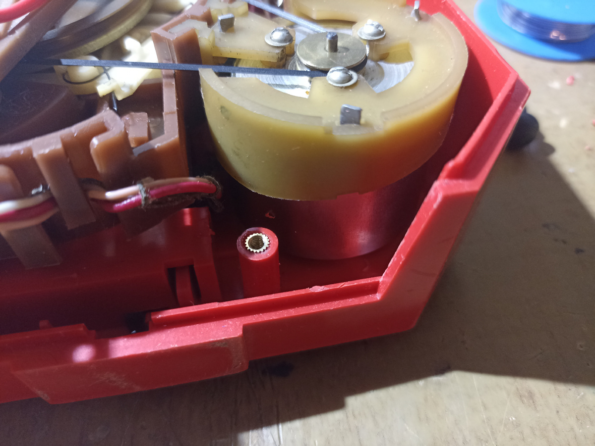 Собственно итоги. Магнитофон оказался вполне исправный для своих лет. Было проведено небольшое ТО, смазано то, что должно быть смазано, пропаял регулятор оборотов, было пару трещин. Из ощутимого - вплавил в штатные стойки бонки М2.5, ввиду их раздолбанности. Доработал кабель для подключения к спекку и сделал простенький DIN - jack переходник. И вот некоторые итоги: - удалось записать и загрузить софт для спекка длительностью до минуты. То что длиннее - вылетает, удалось загрузить только с 4 или 5 раза. Скорее всего проблемы в записи. - достали из закромов кассет, послушали, кайфанули.:)