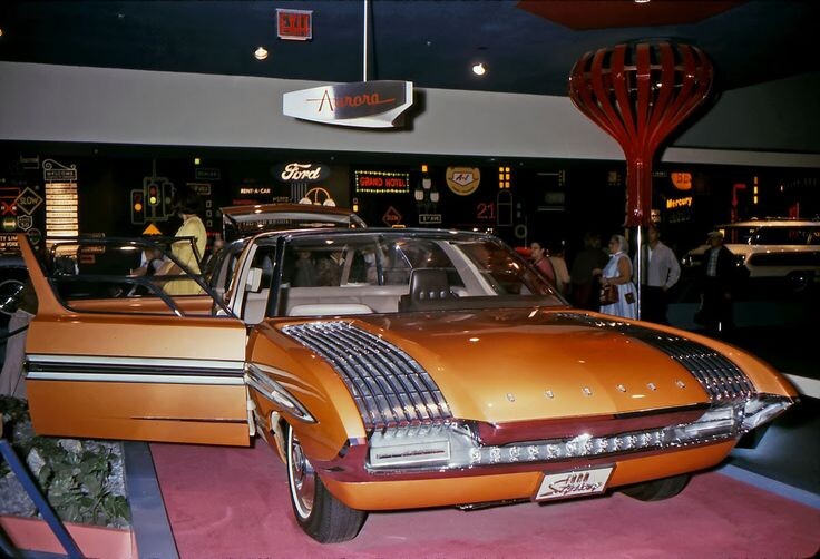 Ford Aurora представляет собой четырехдверный универсал с 3.3-метровой колесной базой. Появился футуристичный авто в далеком 1964 году. В эру соперничества гигантов промышленности. За океаном еще не успел наступить топливный кризис, поэтому транспорт строился с размахом. Тем более, что планировка городов позволяла это сделать.
