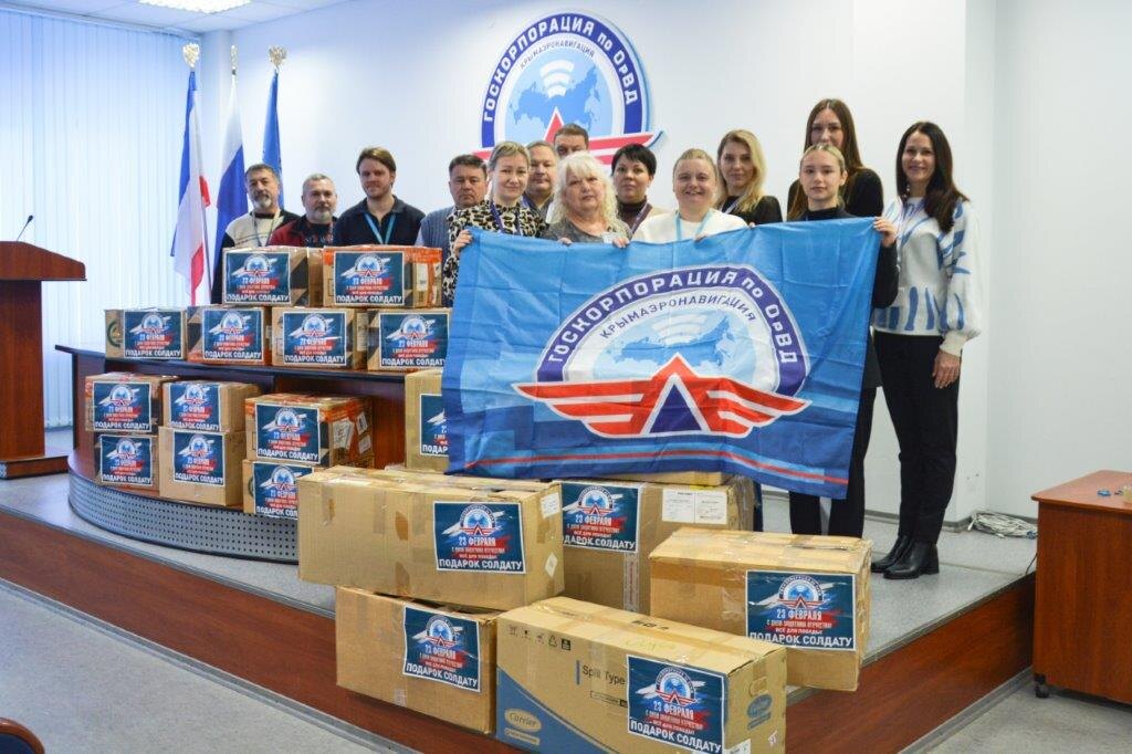 В филиале «Крымаэронавигация» к 23 февраля собраны посылки для солдат, несущих службу в зоне специальной военной операции. В посылках – продукты длительного хранения, предметы гигиены, термобелье, средства индивидуальной защиты, а также деньги на покупку шипованных шин для автотранспорта.