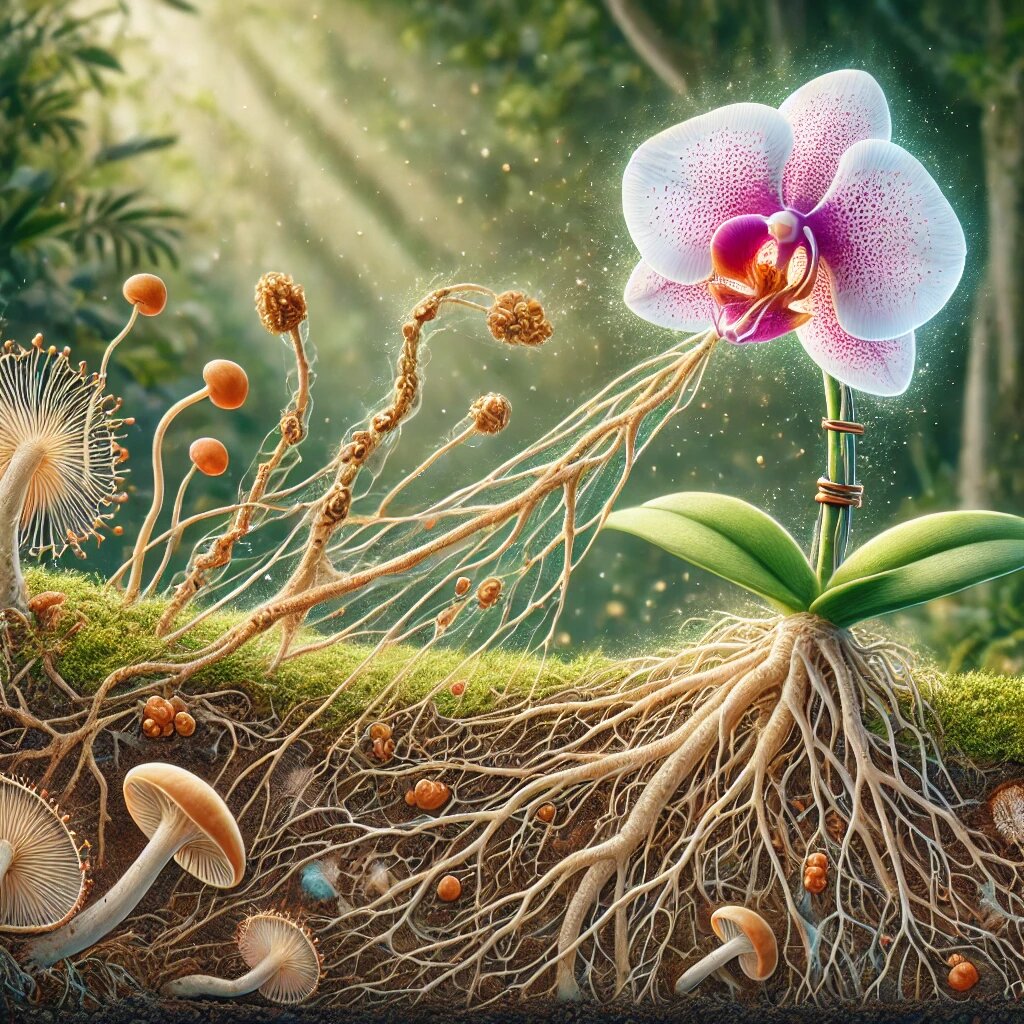 💪 Результат – орхидея становится крупнее и обильно цветёт, используя двойной источник питания (солнце + грибы).
