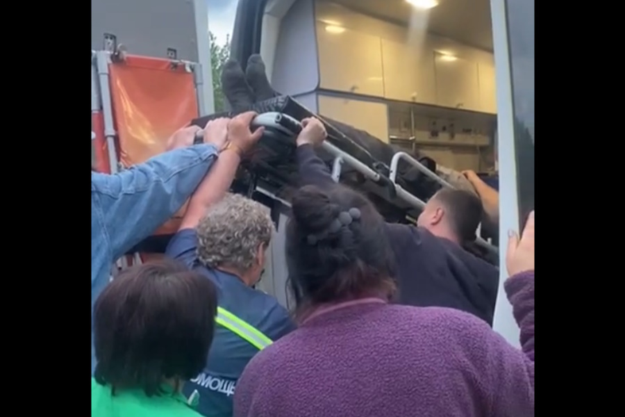 Погрузка носилок в автомобиль скорой помощи, скриншот видео, предоставленного Максимом Коласеем