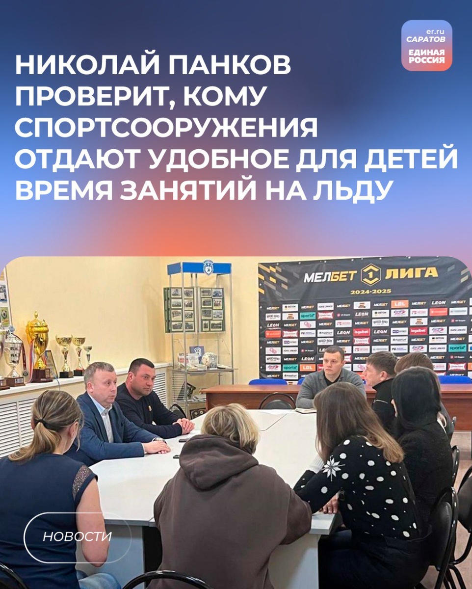 ⛸️Спортивные объекты должны быть доступны всем жителям, но не в ущерб детским командам. Депутат Госдумы Николай Панков изучил ситуацию с ледовыми площадками для тренировки детей. Об этом он рассказал в своем телеграм-канале «Пара слоV». 💬«Напомню, родители хоккеистов рассказали, что им изменили расписание. Предоставляют время, когда большинство учится в школах. У родителей обоснованные подозрения, что удобные вечерние часы отдают под коммерцию. В прошлую пятницу чиновники провели встречу с родителями юных хоккеистов. Сразу скажу, такие встречи «для галочки» проводить больше не нужно. На вопросы, кому отдают лёд в вечернее время, отвечали - делайте запрос; это внесено в календарный план Минспорта. Решил, что сам сделаю депутатский запрос. Губернатору и в прокуратуру области. С просьбой выяснить, кому отданы удобные для детей часы на льду? И кто составляет календарный план Минспорта, где нет места детям? Министру спорта хочу напомнить - его задача развивать детско-юношеский спорт в