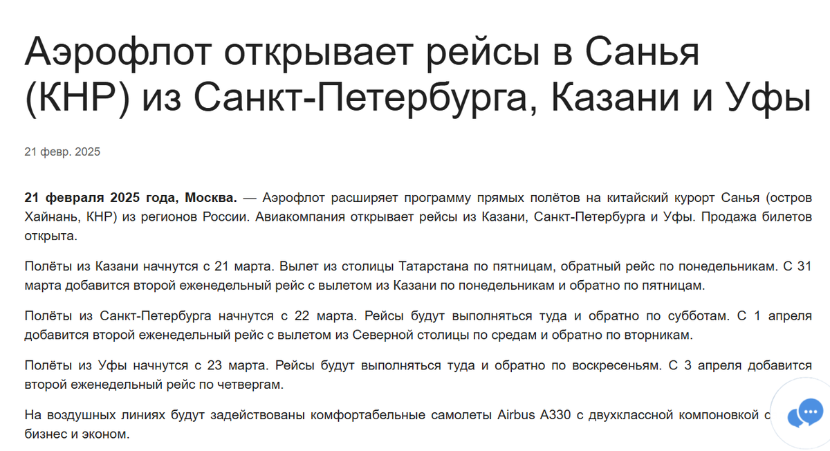 И наконец из столицы Башкирии, из Уфы, прямые рейсы в аэропорт Санья начнутся тоже в Марте - с 23 марта еженедельно по четвергам и воскресеньям (кроме 27 марта)