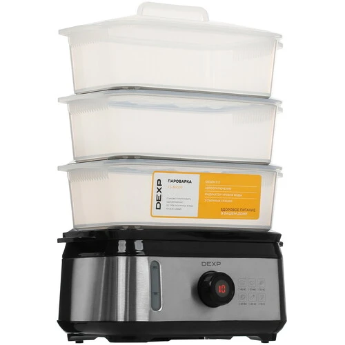 Пароварка DEXP FS-MP399 — это современное кухонное устройство, предназначенное для здорового приготовления пищи на пару. С возможностью готовить разнообразные блюда, она станет отличным помощником для тех, кто стремится к сбалансированному питанию и сохранению полезных свойств продуктов. Пароварка DEXP FS-MP399 имеет стильный и компактный дизайн, что позволяет удобно разместить ее на кухне. Корпус изготовлен из качественных материалов, а прозрачные контейнеры позволяют контролировать процесс приготовления без необходимости открывать крышку. Удобные ручки и легкий вес делают устройство простым в использовании и переноске. Пароварка DEXP FS-MP399 проста в эксплуатации. Пользователь может легко выбрать нужное время и начать процесс приготовления с помощью одной кнопки. Контейнеры легко снимаются и моются, а также подходят для мытья в посудомоечной машине. Прозрачные стенки контейнеров позволяют следить за процессом без открытия. Устройство требует минимального ухода. Контейнеры и крышка л