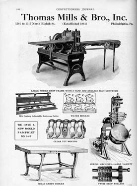С 1840-х годов, благодаря развитию машинного производства, конфеты стали производиться в больших объемах. Одними из первых инноваций в этой области стали вращающиеся паровые формы и машины для изготовления леденцов. В 1855 году два брата из Чикаго основали компанию Savage Brothers. Начав с дровяных и угольных печей для приготовления кондитерских изделий, они разработали и создали оборудование, специально предназначенное для кондитерской фабрики. С каждым годом появлялись новые усовершенствования и изобретения, пока пар и уголь не были заменены газом и электричеством, и производство кондитерского оборудования не стало самостоятельной отраслью. К концу 1800-х годов значительное снижение цен на такие ингредиенты, как сахар, сыграло важную роль в развитии отрасли. Более доступный сахар сделал производство конфет очень прибыльным, что, в свою очередь, открыло двери для более широкого ассортимента кондитерских изделий для потребителей. Простые, но существенные улучшения, такие как домашние т