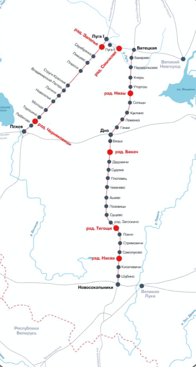 Продолжается развитие инфраструктуры на подходах к портам Северо-Запада России, 7 новых разъездов откроют по проектам АО «Ленгипротранс» (входит в Нацпроектстрой), 2 разъезда на участке Луга-Псков и 5 разъездов на участке Луга-Батецкая-Дно-Новосокольники. Все проекты уже одобрила Главгосэкспертиза РФ. Строительство разъездов в комплексе с развитием инфраструктуры Октябрьской железной дороги ориентировано увеличение транзитного грузопотока из Беларусии, который может быть увеличен до 20 млн тонн. 5 новых разъездов на участке Луга-Батецкая-Дно-Новосокольники получили название Насва, Тигощи, Бакач, Низы, Смычково 2 новых разъезда на линии Луга-Псков это Заполье и Черняковицы. Все они расположены в Псковской, Ленинградской и Новгородской областях. Участки строительства расположены в болотистой местности, где грунт насыщен водой. Чтобы предотвратить деформации путей и защитить их от подтопления, на всех разъездах обустроят водоотводные канавы, лотки и бермы. Земляное полотно усилят геосин