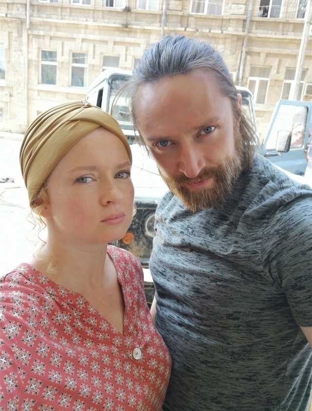 На съемках сериала «Русская жена». С Эриком Яраловым