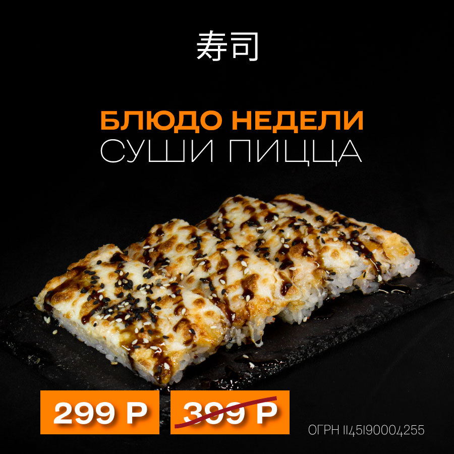 Суши пицца доступна за 299Р вместо 399Р.