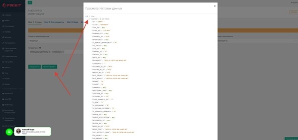 С помощью функционала "Протестировать" и "Тестовые данные" вы можете на каждом шаге интеграции проверить, нет ли в настройках ошибок, а также получить недостающие данные, к примеру, коды специальных пользовательских полей.