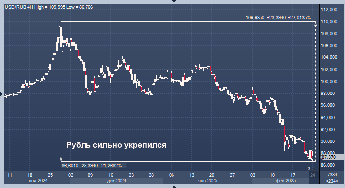 «Если говорить о курсе именно в 88 рублей за доллар, то он, конечно, более крепкий, чем баланс, который мы видели и который сейчас стоит в наших прогнозах», - ответил он на вопрос, объясняется ли укрепление рубля и фундаментальными факторами с точки зрения платежного баланса или носит исключительно психологический характер.«У нас сейчас рынок гораздо более волатильный с прошлого года после того, как биржевой механизм по факту оказался разрушен. Мы сейчас работаем через небиржевую регистрацию контрактов», - пояснил Решетников существенные колебания курса рубля. «Наши новые оценки будем готовить в марте», - сказал министр о новых ожиданиях министерства на конец года.«С точки зрения влияния на отрасли - ситуация разная. Если, например, для производителей удобрений - более или менее ситуация, то для угольщиков это большая проблема, потому что курс наложился на падение внешних цен. Поэтому ситуация в разных отраслях складывается по-разному», - ответил он на вопрос, насколько это укрепление уже чувствительно для экспорта.