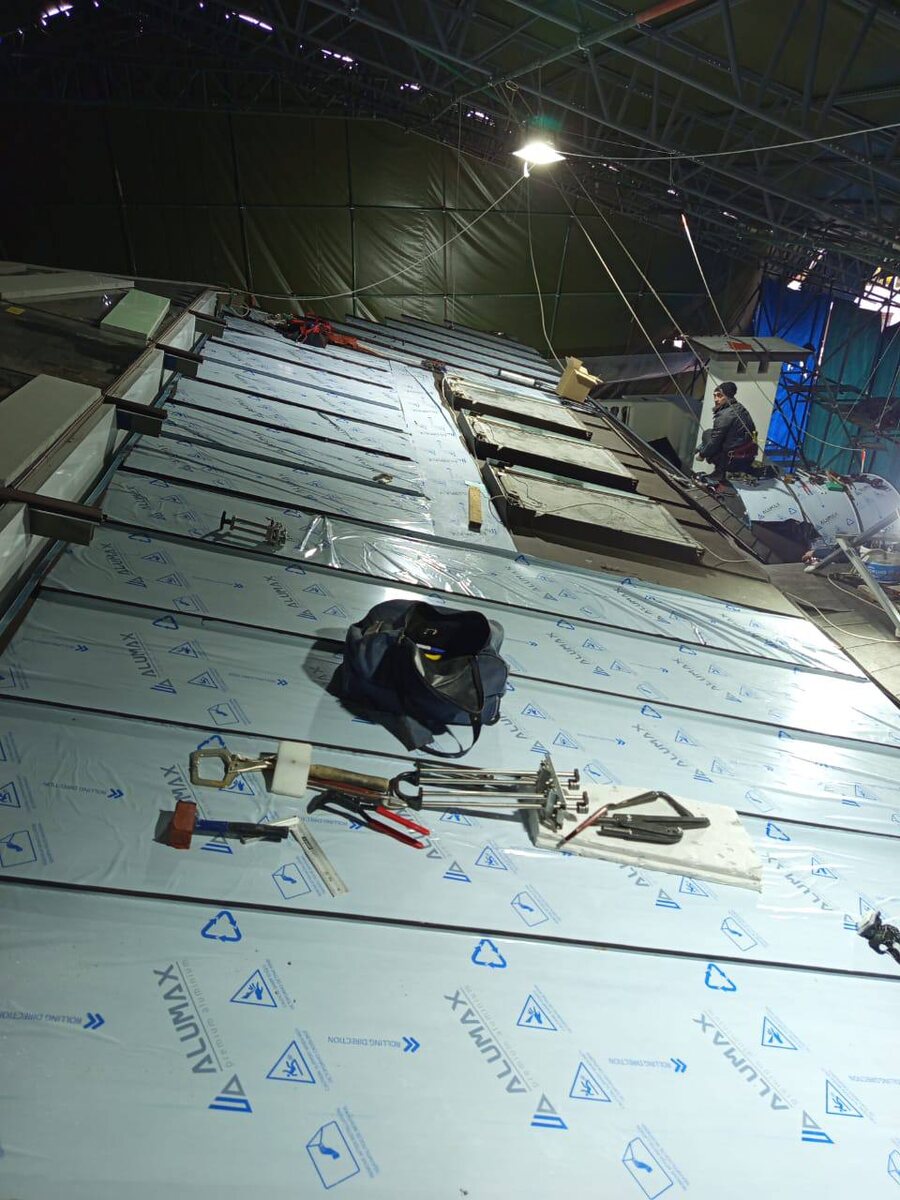 Сегодня хотим поделиться ходом работ над объектом в Сочи, где мы используем инновационную систему кассетных лесов для монтажа фальцевой кровли ALUMAX на здании площадью свыше 1000 кв. м. Для того, чтобы не останавливать работы в зимнее время года, мы возвели специальную систему укрытия, которая показала себя отлично, выдержав сильные дожди и шторма, обрушившиеся на город за последнее время. Благодаря данной технологии мы обеспечиваем возможность круглогодичной работы в любых климатических зонах: от Владивостока до Сочи, гарантируя стабильность и защиту от непогоды. Наши системы обеспечивают высокую производительность и бескомпромиссное качество кровельных работ. Более того, конструкция позволяет монтировать освещение, создавая комфортные условия для работы в круглосуточном режиме. Это особенно актуально при сжатых сроках строительства или реконструкции. И, что немаловажно, такие системы временного укрытия кровли позволяют существенно снизить затраты в сравнении с классическими теплякам
