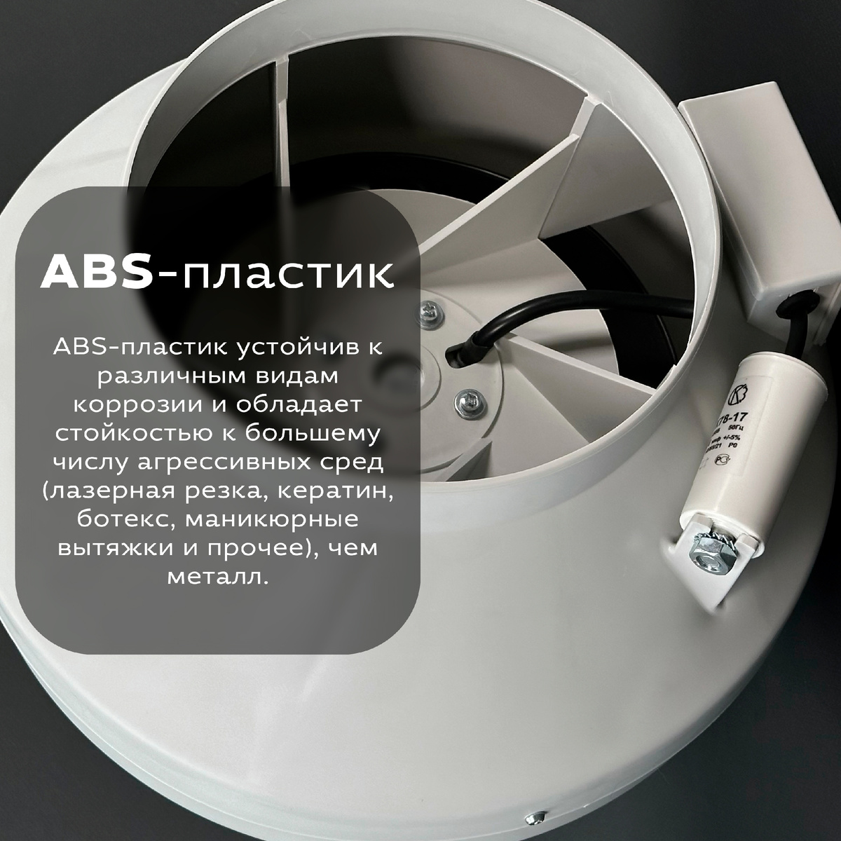 Компания КРАФТ занимается производством круглых канальных вентиляторов ВКК, которые широко используются в системах вентиляции и вытяжки. Наши вентиляторы собираются в России с использованием мотор-колес от проверенных производителей из Китая, Германии и Швейцарии. Cерия Е : корпус выполнен из прочного промышленного ABS-пластика, мотор-колеса Германия и Швейцария. Данные вентиляторы представлены в шести диаметрах 100, 125, 160, 200, 250 и 315 мм. Корпус вентилятора выполнен из промышленного ABS-пластика, который выдерживает температуру от -40°С до +120°С. Вентилятор в корпусе из ABS-пластика имеет меньший вес, что в большинстве случаев позволяет устанавливать его без кронштейна путем крепления непосредственно на воздуховодах. ABS-пластик снижает уровень шума — до 55дБ, так как имеет меньший уровень звукопроводности по сравнению с металлом, а так же лучше гасит вибрации и не требует обязательного заземления вентилятора. Асинхронный однофазный электродвигатель с внешним ротором оснащен п