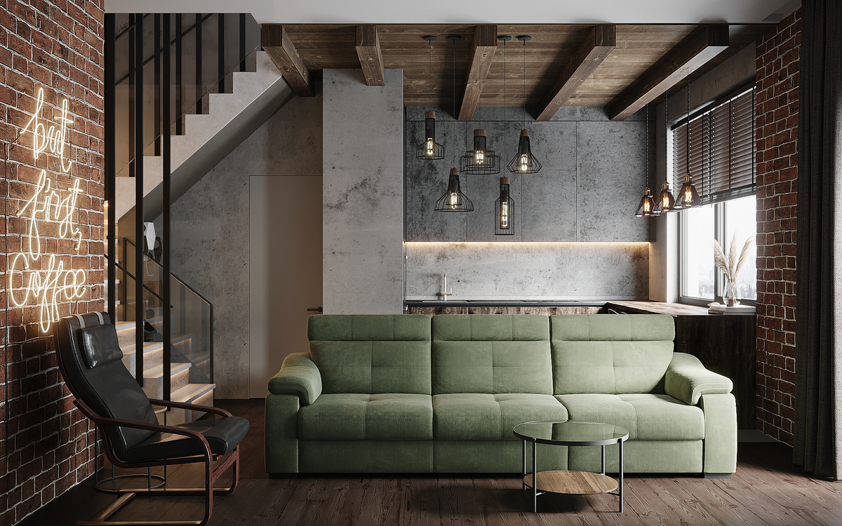 Лофт — это не просто про кирпич и бетон. Это про свободу, бунтарство и отсутствие границ. Но если границы в виде стен у вас уже есть, их можно обыграть.