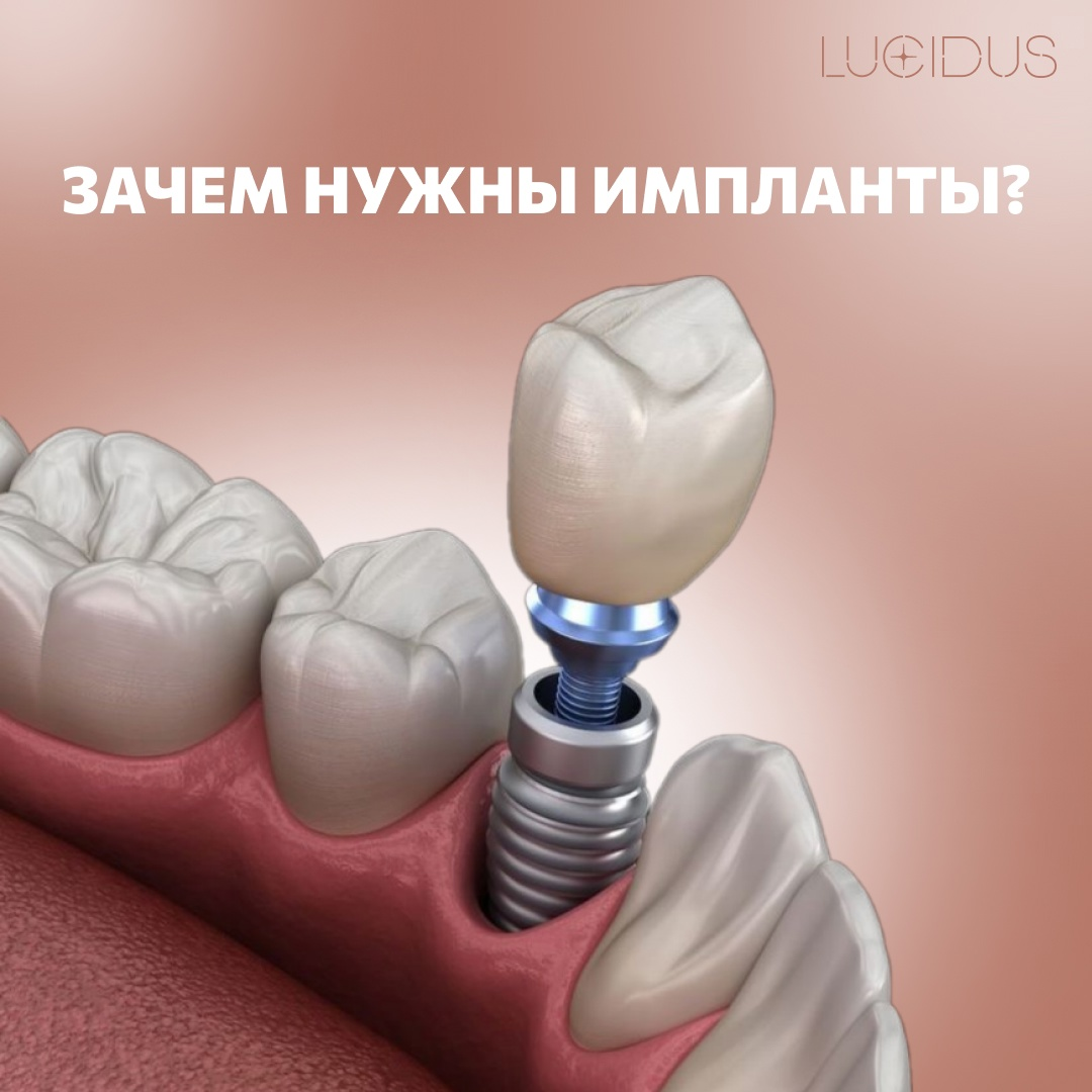Имплантация — лечение, которое позволит вернуть утраченный зуб. Смысл процедуры в том, что хирург устанавливает в десну титановый «корень», который служит надёжной основой для искусственной коронки — верхней части зуба. Этот метод стал популярным благодаря своей долговечности и безопасности для соседних зубов. Главное преимущество имплантации — возможность вернуть не столько эстетику улыбки, сколько полноценную жевательную функцию и уберечь соседние зубы от обточки для установки моста. Кроме того, имплант предотвращает смещение и искривление других зубов, которые стремятся со временем занять пустующее место. Искусственные зубы, установленные на имплантаты, внешне ничем не отличаются от натуральных и не требуют специального ухода. Процесс имплантации обычно проходит в несколько этапов: - обследование и подготовка, которая может включать компьютерную томографию (КТ) и при необходимости МРТ для оценки состояния костной ткани; - установка импланта, которая проводится под анестезией и зани