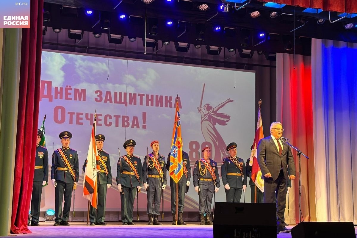 Депутат Законодательного Собрания от «Единой России» Сергей Никонов поздравил жителей Лесного с Днем защитника Отечества. Праздничное мероприятие прошло в Центре культуры «Современник», где собрались военнослужащие гарнизона, ветераны ВОВ, труженики тыла, сотрудники оборонного предприятия «Электрохимприбор», спасатели МЧС, медики, юнармейцы, члены городских общественных организаций. «Дорогие друзья, наступивший год объявлен Президентом России Годом защитника Отечества. Это символ глубокого уважения к ратному труду и подвигу всех поколений воинов России. Приближается и еще одна знаменательная дата – 80-летие Великой Победы. Низкий поклон нашим ветеранам, труженикам тыла, детям войны. Мы гордимся нашими Героями», – сказал Сергей Никонов.