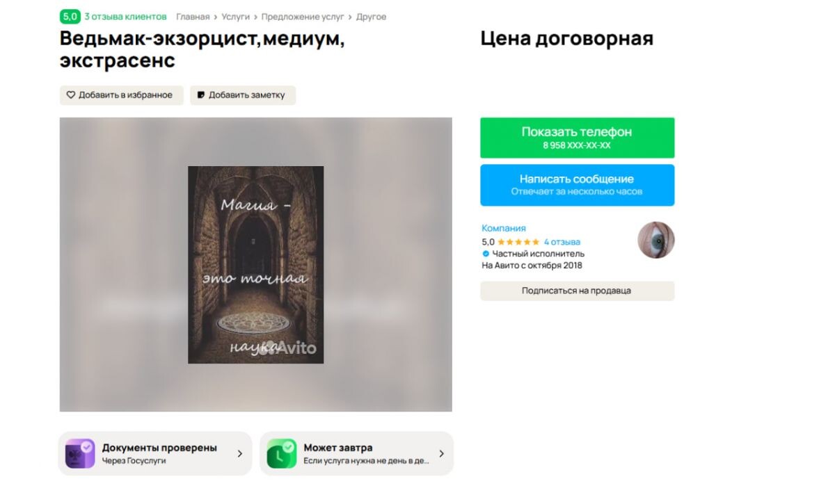 Геральт из Воронежа: услуги ведьмака-экзорциста за подарки предлагают в Ленинском районе города