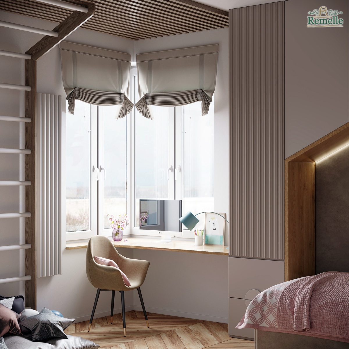 Блэкаут шторы зачастую состоят из синтетического волокна. Такая ткань довольно плохо драпируется из-за своей высокой плотности, поэтому ее очень удобно использовать в качестве рулонной шторы: она компактно собирается в рулон над окном днем, а ночью разворачивается в ровное полотно. Не так эстетично, как обычные портьеры, но солнце до вас точно не доберется.