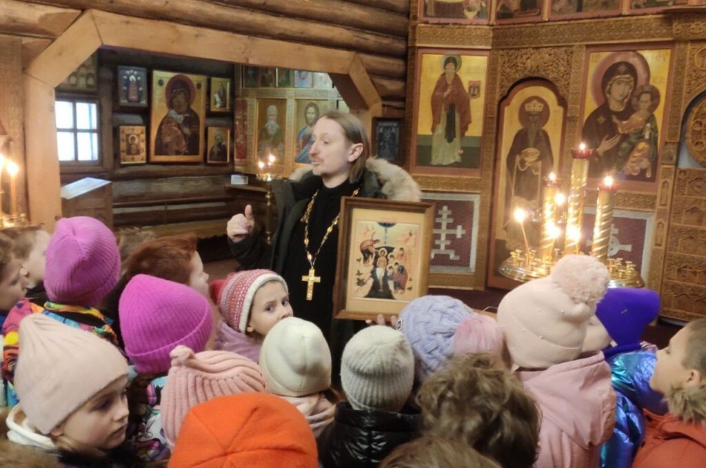 Клирик храма Рождества Иоанна Предтечи г. Дубны иерей Павел Некрасов провёл с детьми познавательную беседу, в ходе которой рассказал о праздниках Рождества Христова и Крещения Господня. Пастырь объяснил, что такое икона, для чего нужны храмы, а также научил детей правильно совершать крестное знамение, объяснив значение троеперстия.