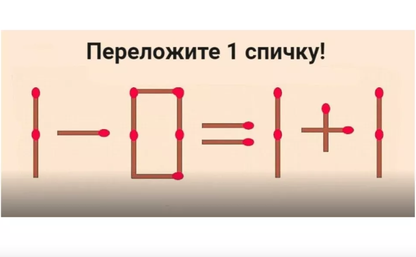 В равенстве «1−0=1+1» даже первоклашки найдут ошибку. Необходимо переложить всего 1 спичку, но какую?