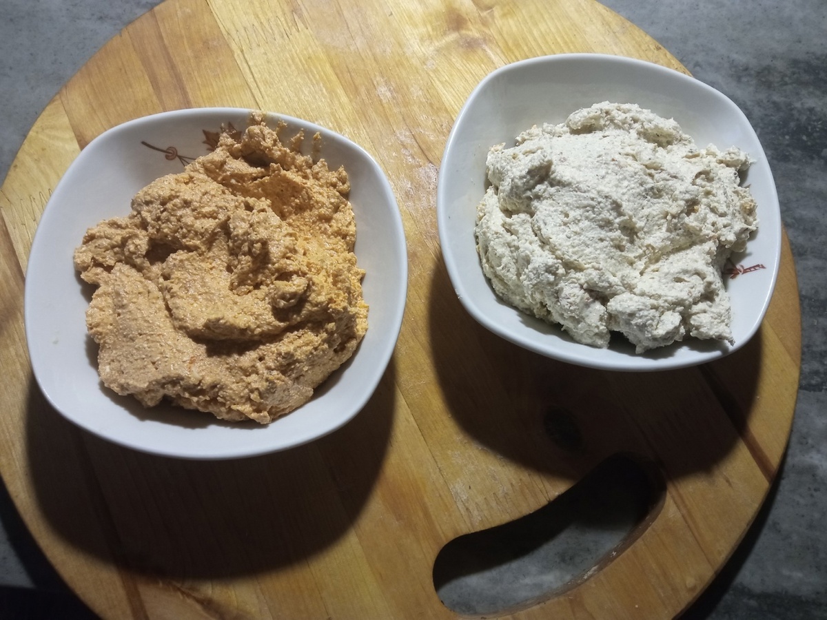 А вот дальше уже можно варьировать по-разному (и солить или не солить по вкусу). Например, творог плюс чеснок и паприка. Или творог, чеснок и острый красный перец (с ним осторожней надо).