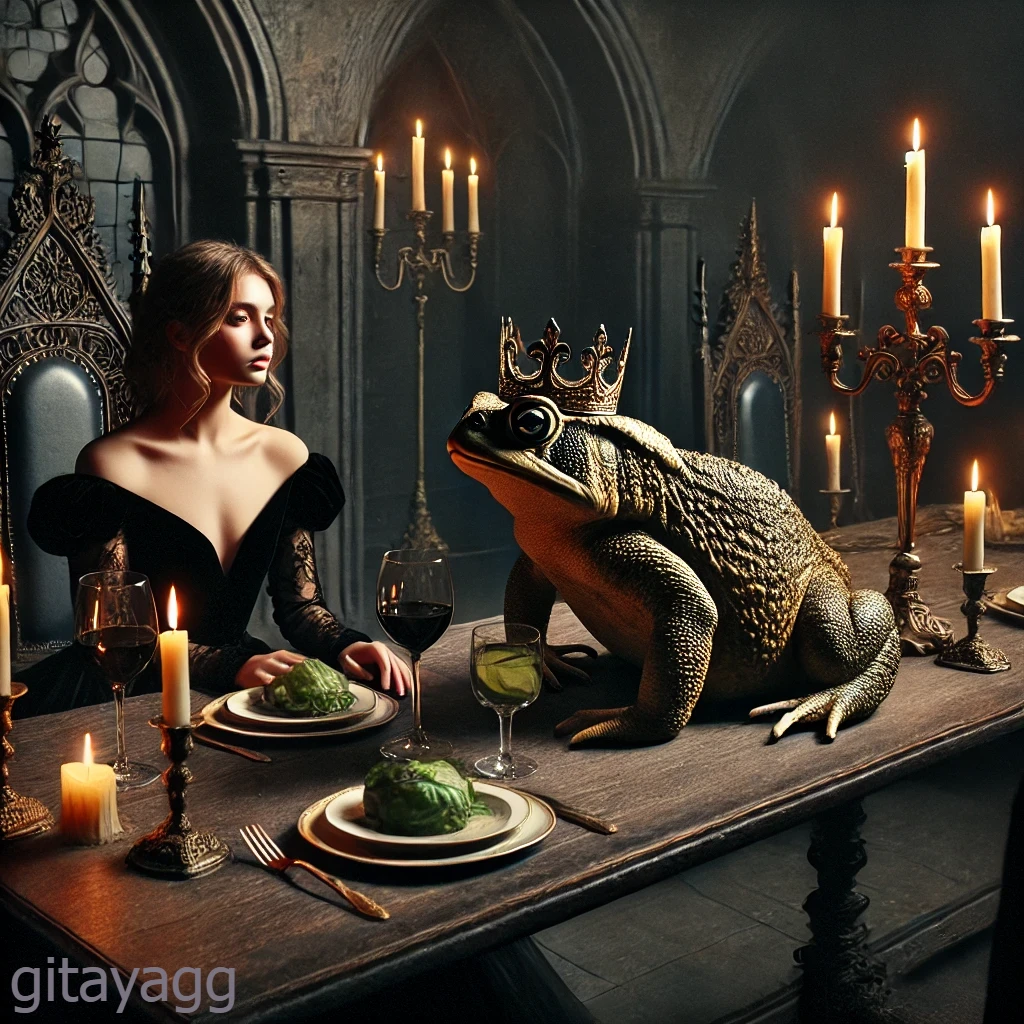 Жаба поправила королевское украшение, нетерпелива квакнула и требовательно вытянула губы для поцелуя.