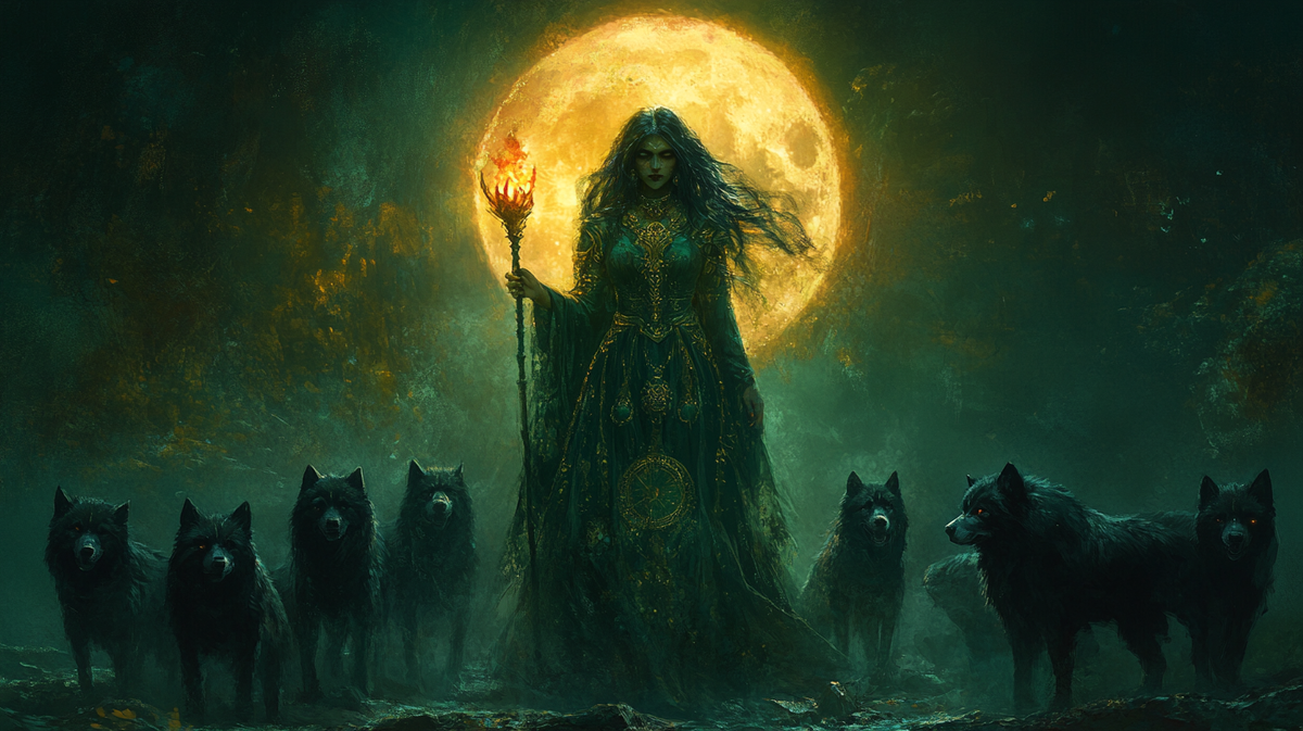 Ночь опускается на древние перекрёстки. В тишине едва заметно колыхается тусклый факел, вырисовывая силуэт трёхликой богини, владычицы Земли, Моря и Неба. В отдалении слышится вой собак, а тени мерцают по граням нашего восприятия. Это Геката — хранительница порогов, обладательница ключей в Подземный мир и лучезарная факелоносица, ведущая искателей по лунным тропам.