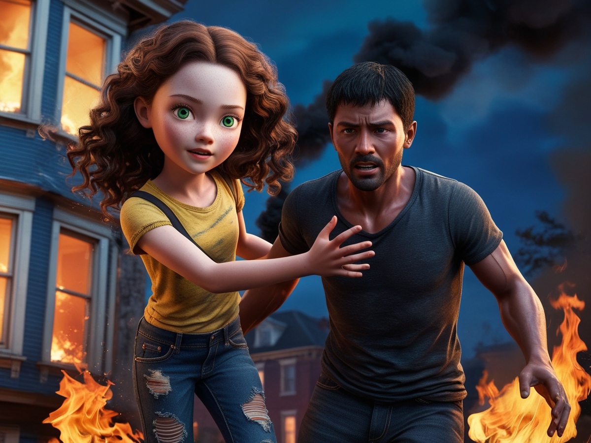 Алиса всегда считала себя обычной девушкой. Она работала в небольшом кафе на окраине города, мечтала о путешествиях и любила читать книги по вечерам. Но однажды её жизнь изменилась навсегда. Это был обычный вечер, Алиса возвращалась домой после смены. На улице уже стемнело, и только огни фонарей освещали её путь. Вдруг она услышала крики и увидела толпу людей, собравшуюся вокруг старого жилого дома. Из окон валил густой чёрный дым, а на верхних этажах мелькали языки пламени. — Кто-то там ещё есть! — кричал мужчина из толпы. — На третьем этаже! Алиса почувствовала, как её сердце заколотилось. Она не думала, не размышляла — её ноги сами понесли её к зданию. Люди кричали, чтобы она остановилась, но она уже вбежала в подъезд. Дым щипал глаза, дыхание стало прерывистым, но она продолжала подниматься по лестнице. На третьем этаже она увидела дверь, из-под которой вырывался дым. Алиса толкнула её плечом, и дверь поддалась. В комнате, охваченной огнём, на полу лежал мужчина. Он был без сознани
