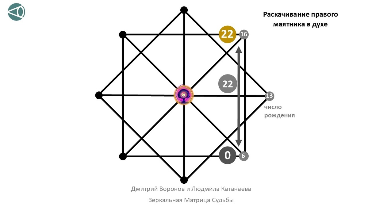 Если этот человек проживал подобные состояния, то это и есть сильная раскачка маятника. В следующий подобный раз, он может уже проявить бдительность и сказать себе: ага, это мой маятник! и остановить раскачку. Тем самым становясь на позицию 6 в потенциал (число рождения).