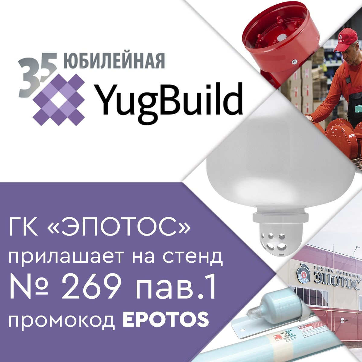 ГК «ЭПОТОС» является участником выставки YugBuild и приглашает посетить стенд №269, павильон 1. В рамках выставки будут представлены средства и системы пожаротушения. Технические специалисты будут консультироваться гостей стенда по вопросам монтажа, эксплуатации и сервисного обслуживания исполнительных средств пожарной автоматики, а также поделятся знаниями и опытом в области особенностей применения продукции. Для бесплатного посещения выставки используйте специальный промокод EPOTOS на сайте выставки.