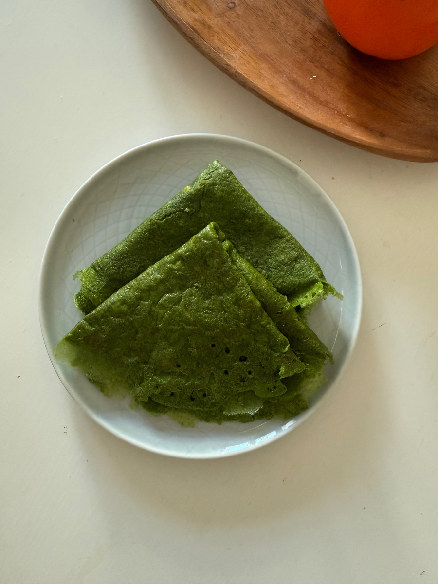 Началась неделя масленицы 🥞 Предлагаю разнообразить ее зелеными блинами 🤗 Что нам нужно: ▫️свежий шпинат - 65 г ▫️мука цельнозерновая полбяная (можно заменить на любую другую) - 40 г ▫️яйцо - 1 шт ▫️вода - 180 мл ▫️соль - 1/2 ч.л. ▫️масло гхи растопленное - 1 ст.л. ▫️специи - куркума, мускатный орех, паприка - по щепотке Что мы делаем: 1. Шпинат промываем, складываем в чашу блендера, добавляем яйцо и масло. Измельчаем до однородной массы. 2. В отдельной миске смешиваем воду и соль. К воде добавляем шпинатную смесь. Перемешиваем. 3. К смеси добавляем муку, хорошо перемешиваем. Тесто получиться жидким. 4. Сковороду разогреваем, смазываем маслом гхи, в центр сковороды наливаем порцию теста, распределяем по сковороде. Жарим на среднем огне. Блинчик можно не переворачивать, тесто схватиться. Если решите переворачивать, то важно делать это аккуратно, можно помочь себе тарелкой, иначе блинчик может развалиться. Вкуснее с сытными начинками 👌🏻