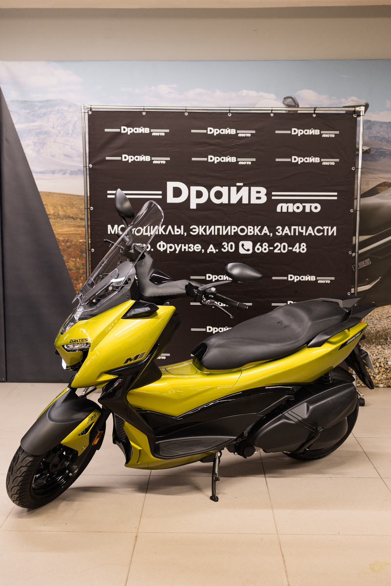 Встречайте ZONTES ZT350-M – мотоцикл, созданный для тех, кто стремится к новым вершинам комфорта и динамики. Этот байк объединяет мощь, экономичность и передовые технологии, предлагая уникальный опыт управления и уверенность на каждой дороге. Под капотом ZT350-M скрывается одноцилиндровый, 4-тактный двигатель DOHC с инжекторной системой EFI и рабочим объемом 349 см³. Он развивает 37 л.с. при 7500 об/мин и обеспечивает максимальный крутящий момент 38 Нм при 6000 об/мин, гарантируя плавное и мгновенное ускорение. Автоматическая вариаторная трансмиссия делает управление байком интуитивно понятным, позволяя сосредоточиться на дороге и получать удовольствие от каждой поездки. Безопасность – один из приоритетов ZONTES ZT350-M. Передняя и задняя тормозные системы с дисками диаметром 320 мм и 265 мм соответственно, а также ABS от Bosch и система контроля тяги (TCS) обеспечивают надежное торможение в любых условиях. Дополнительные функции, такие как датчики давления в шинах, два USB-порта, беск
