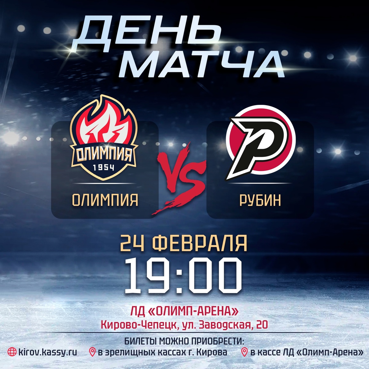 24 февраля в Кирово-Чепецке пройдет матч чемпионата ВХЛ, в котором "Олимпия" сыграет против "Рубина" в матче чемпионата ВХЛ.