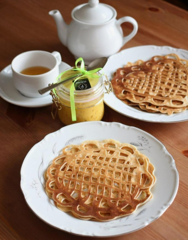 Масленица — это не только время для веселья и гуляний, но и настоящая кулинарная феерия! В этот период не бывает лишним добавление творчества на ваш стол. А что может быть лучше, чем удивить родных и гостей красивыми, ажурными блинчиками, напоминающими нежные салфетки? Такие необычные и вкусные блинчики станут настоящей изюминкой праздника, а их приготовление не займет много времени. Предлагаю вам простой рецепт, с помощью которого вы сможете нарисовать на сковороде любые узоры, превращая обычные блины в маленькие произведения искусства! Для начала соберите все необходимые продукты. Убедитесь, что у вас есть бутылка с крышкой с отверстием — именно она станет вашим «инструментом художника». Разбейте яйца в миску, добавьте сахар и щепотку соли. Венчиком или миксером взбейте массу до однородного состояния. Постепенно влейте тёплое молоко в яичную смесь и перемешайте. Муку соедините с разрыхлителем и просейте через сито в жидкую основу. Это поможет избежать образования комков и сделае