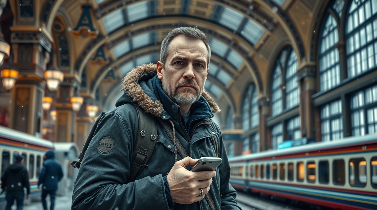 Богдан стоял на станции и его взгляд устремился куда-то вдаль.