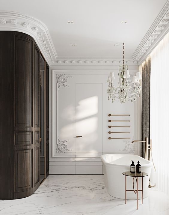 - Классические элементы: Использование классических элементов, таких как колонны, пилястры, лепнина, карнизы и розетки.