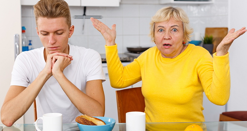 -Видали, барин какой! Отоспаться он хочет. Жена на работе ни свет ни заря, теща у плиты, а Олежек наш сон досматривает! Не нервируй лучше меня, а быстро поднимайся!
