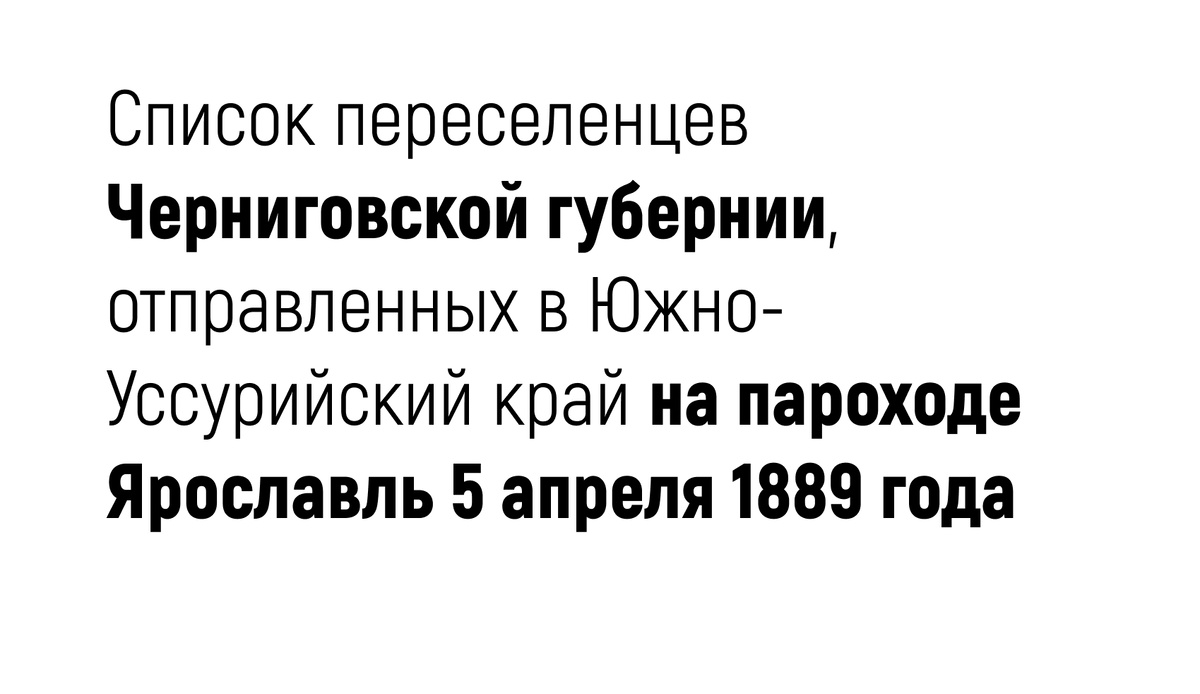 Список переселенцев Черниговской губернии, отправленных в Южно-Уссурийский край на пароходе Ярославль 5 апреля 1889 года