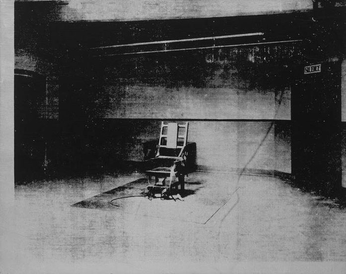 «Электрический стул» был создан американским художником Энди Уорхолом в 1964 году и представляет собой холст среднего размера, на который серебристой акриловой краской нанесена трафаретная печать.